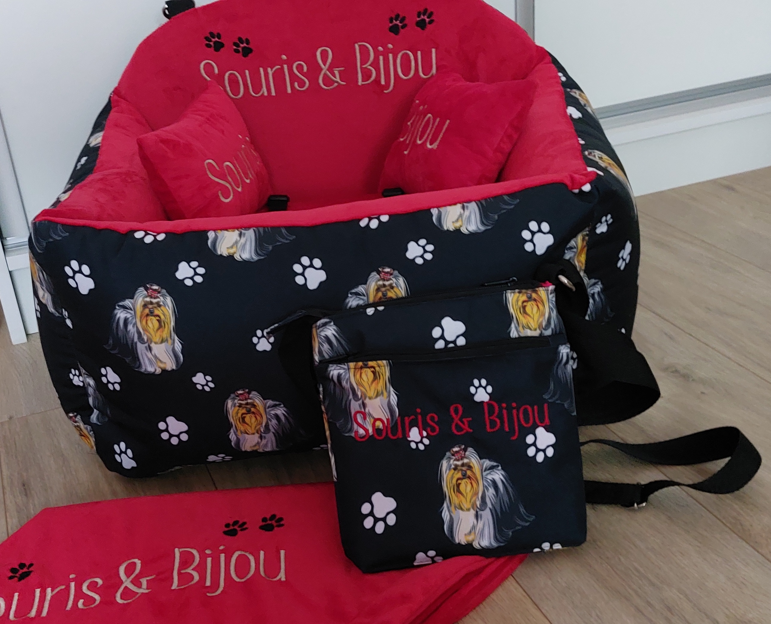 Aj takúto krásnu súpravu viem ušiť pre Vašich labkáčov. Táto je síce pre dve yorkširky, ale na výber je veľa rôznych motívov so psíkom. Potešte aj seba s crossbody taškou vo Vašom obľúbenom dizajne psíka