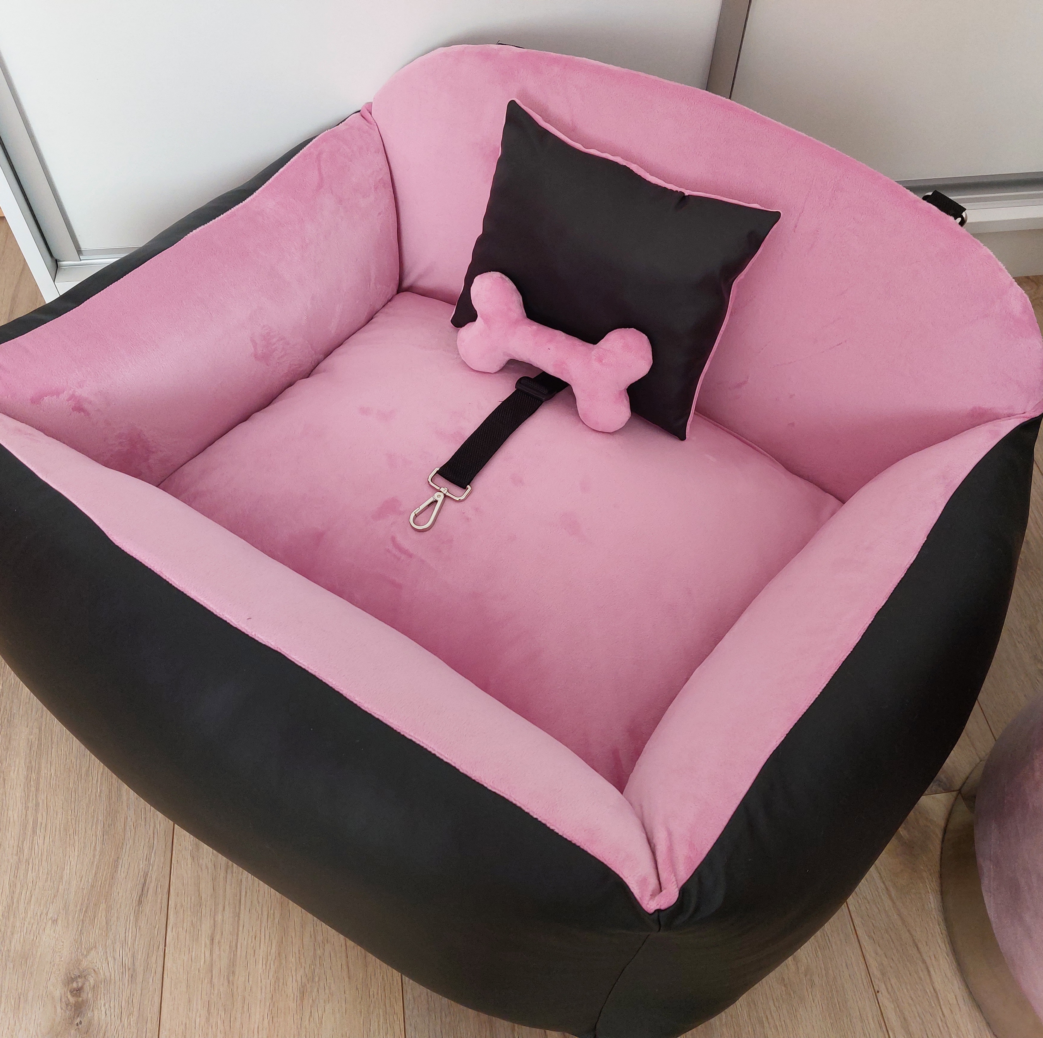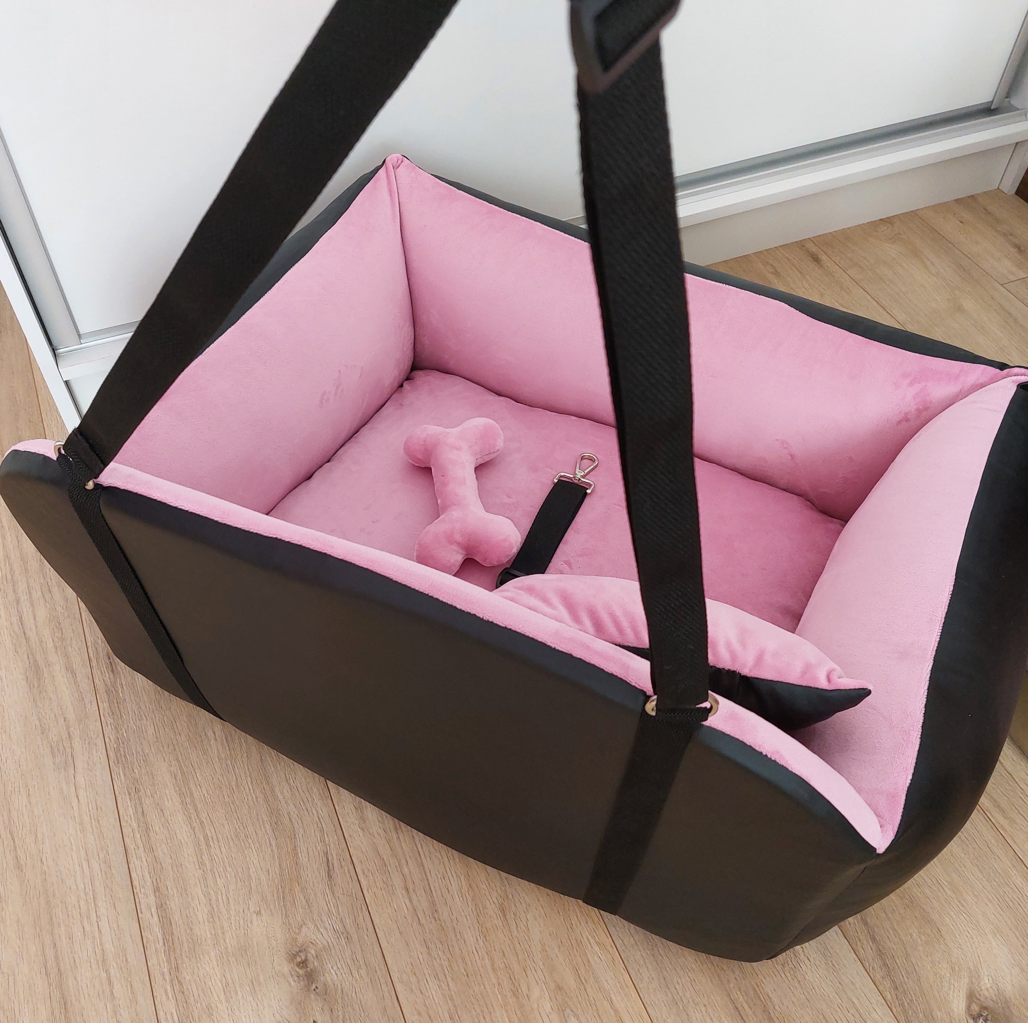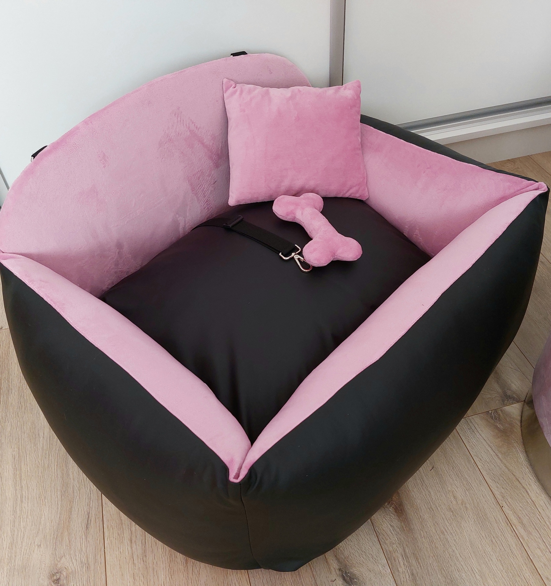 Ďaľšia autosedačka bez výšivky, v čierno-ružovom prevedení. Väčší rozmer 70x55cm.