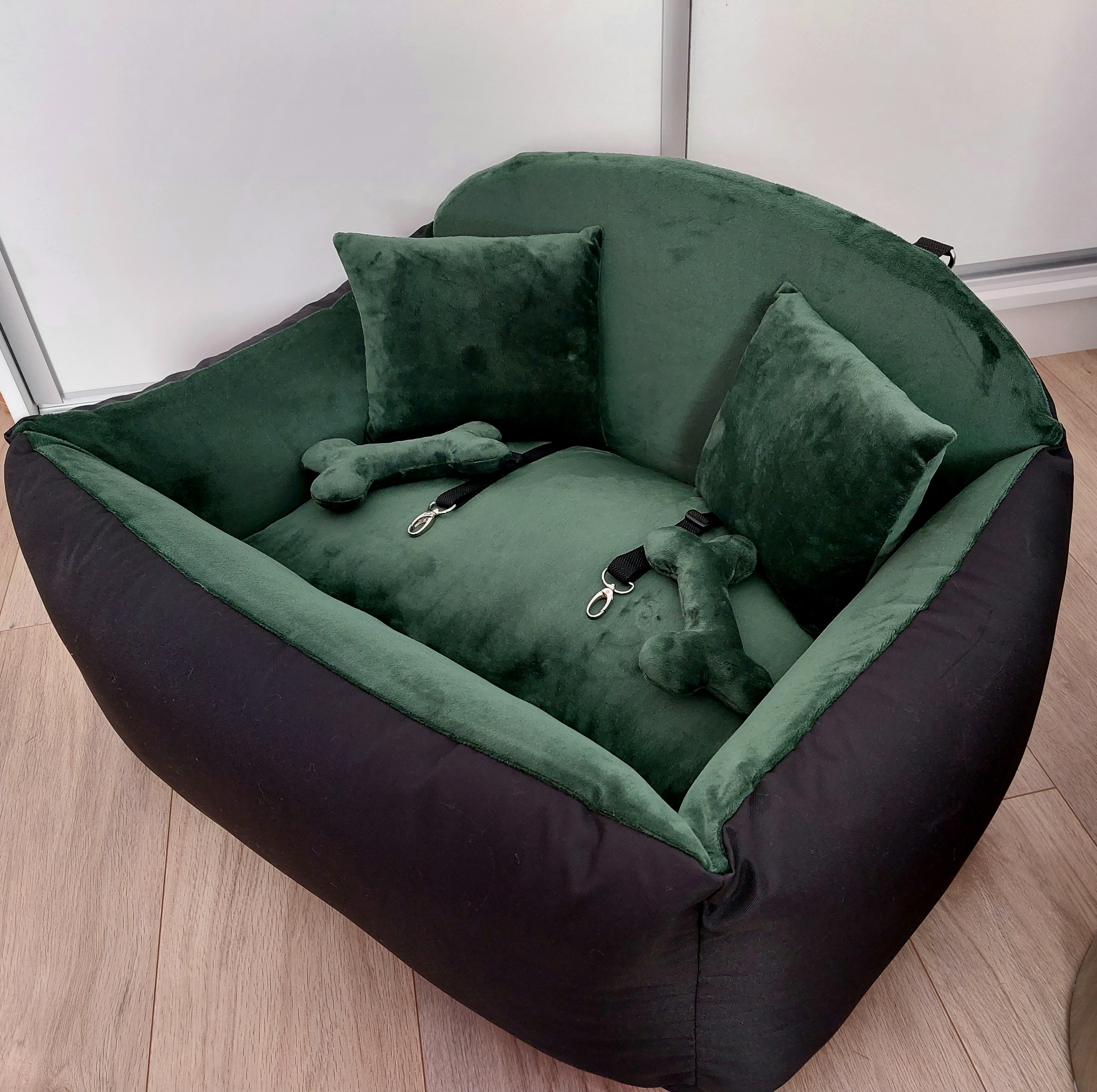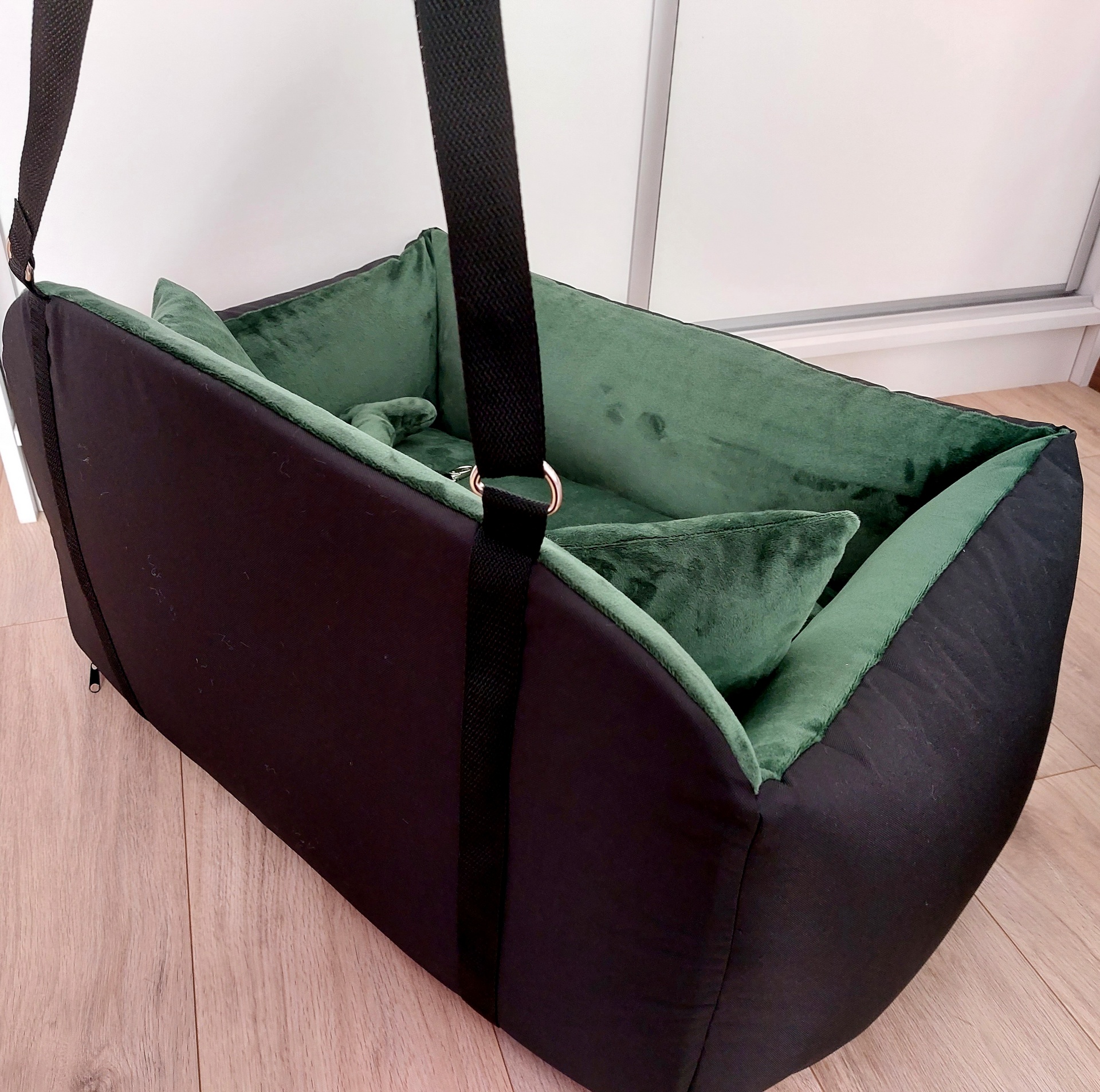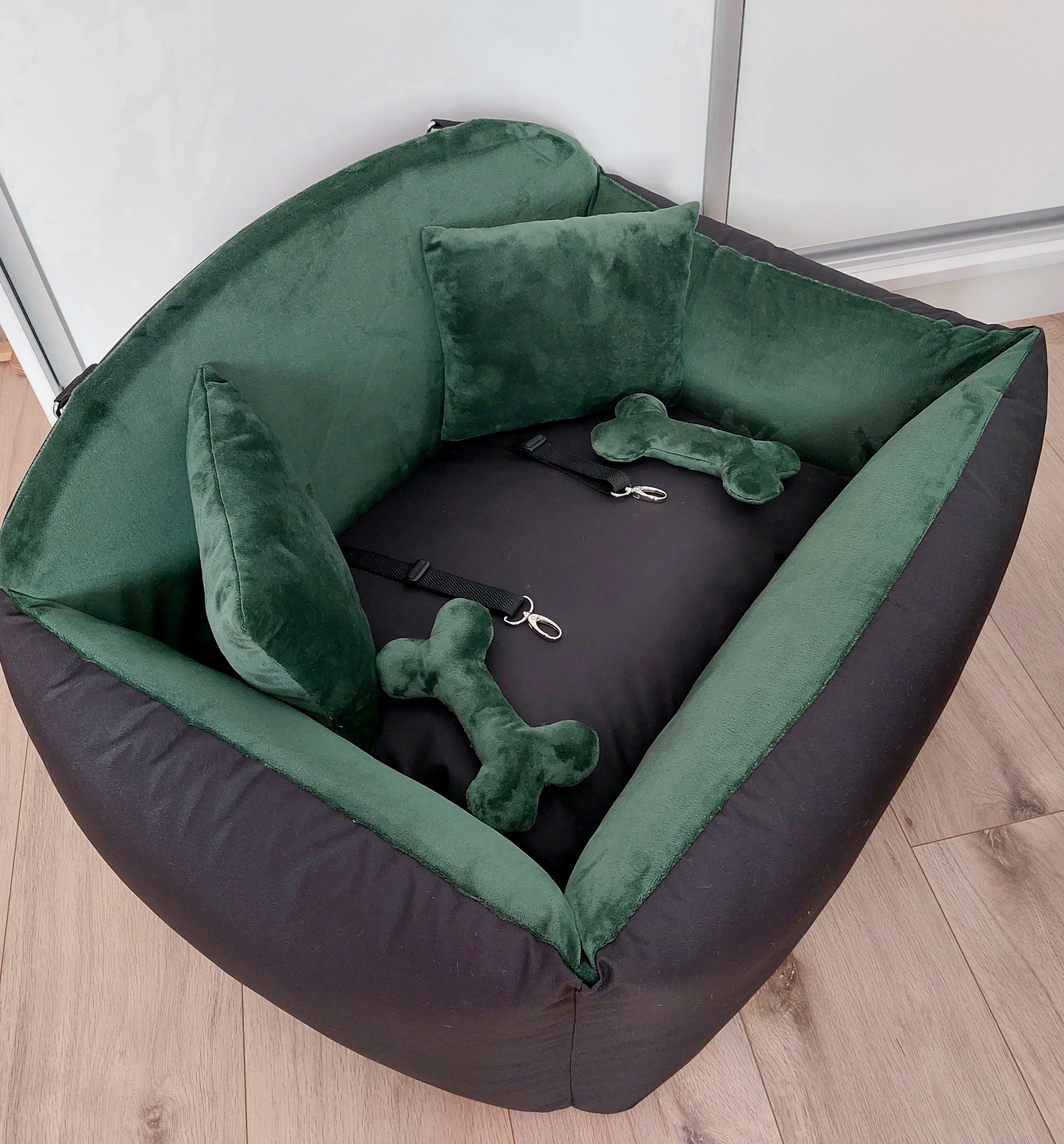 Elegantná zeleno-čierna autosedačka pre dvoch psíkov bez vyšivky
