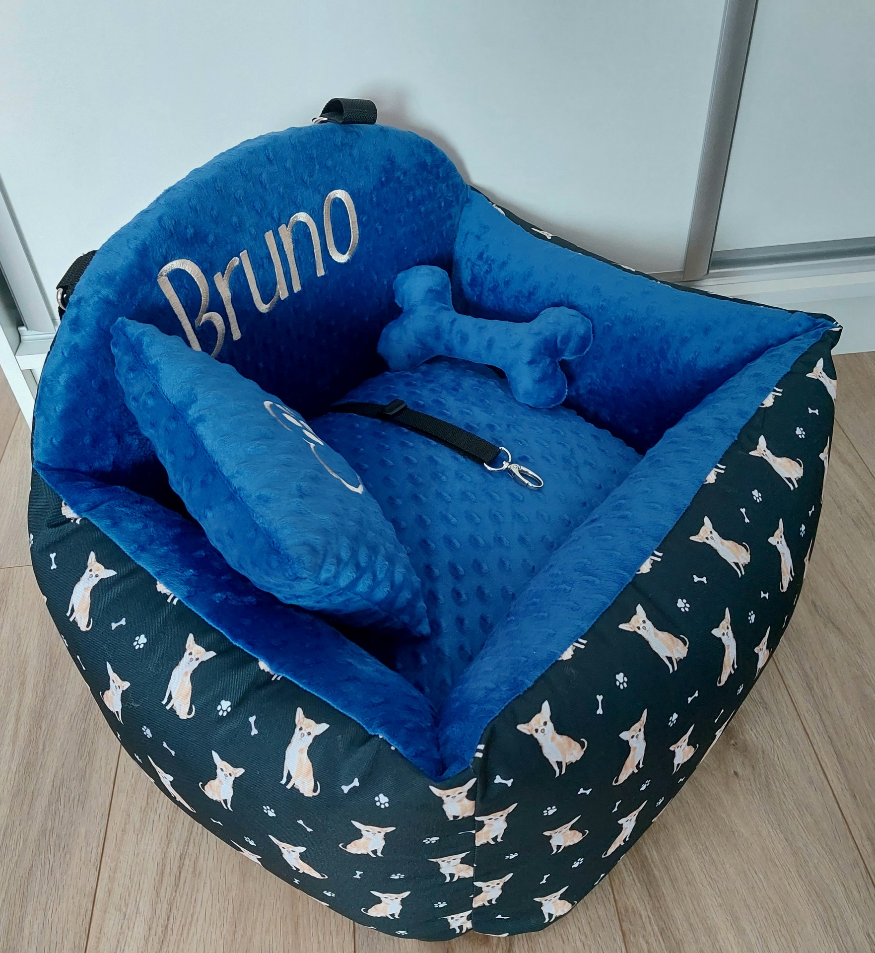 Autosedačka pre čivavku Brunka v krásnej kombinácii .Rozmer 50x40cm.
