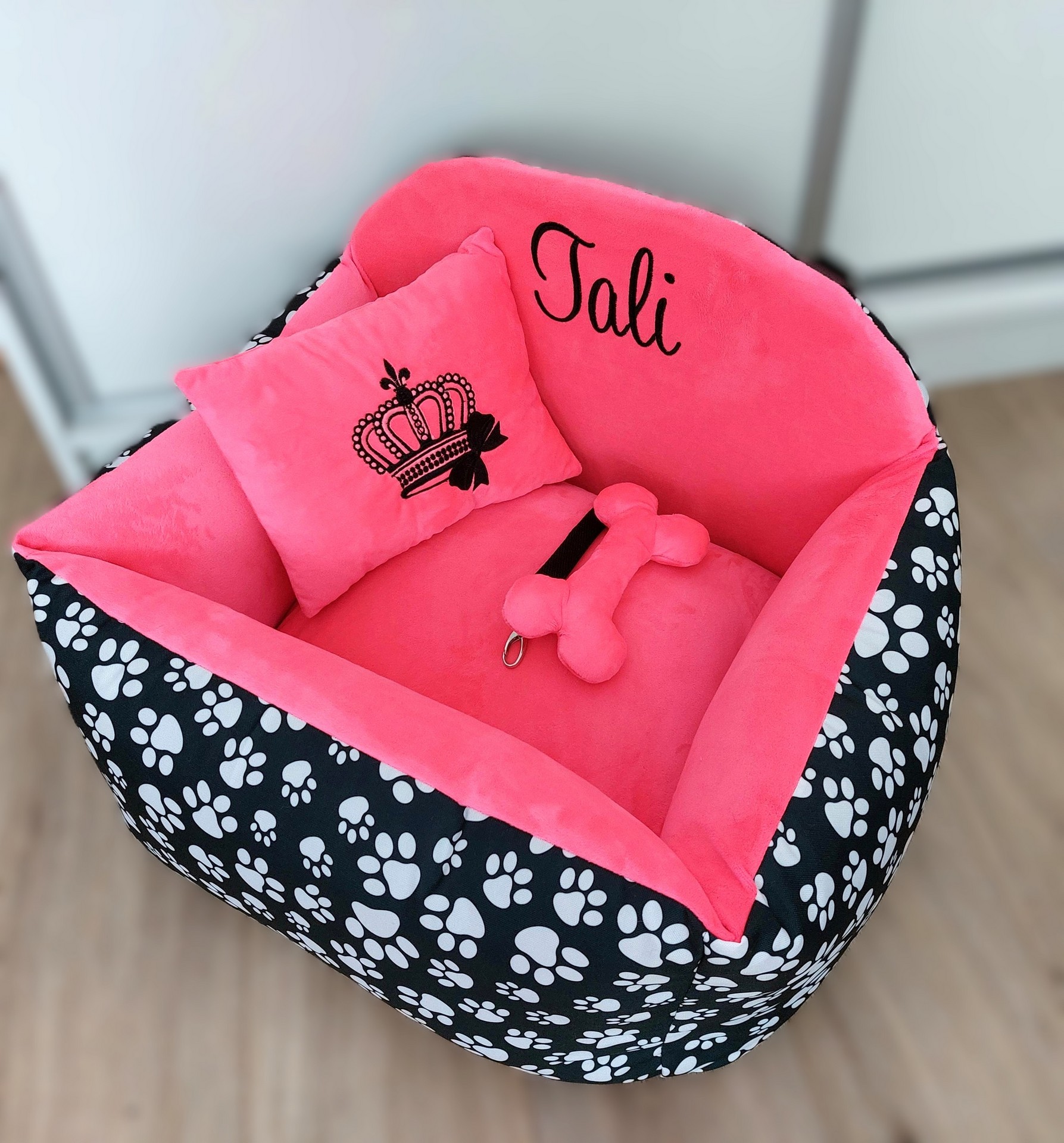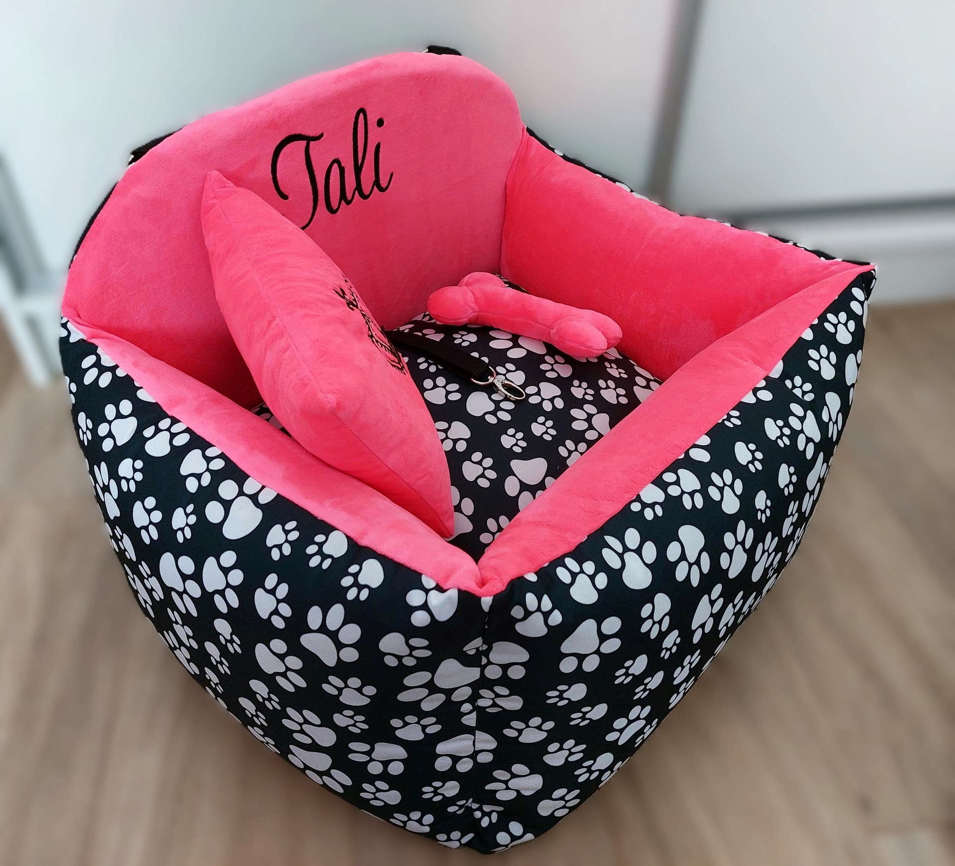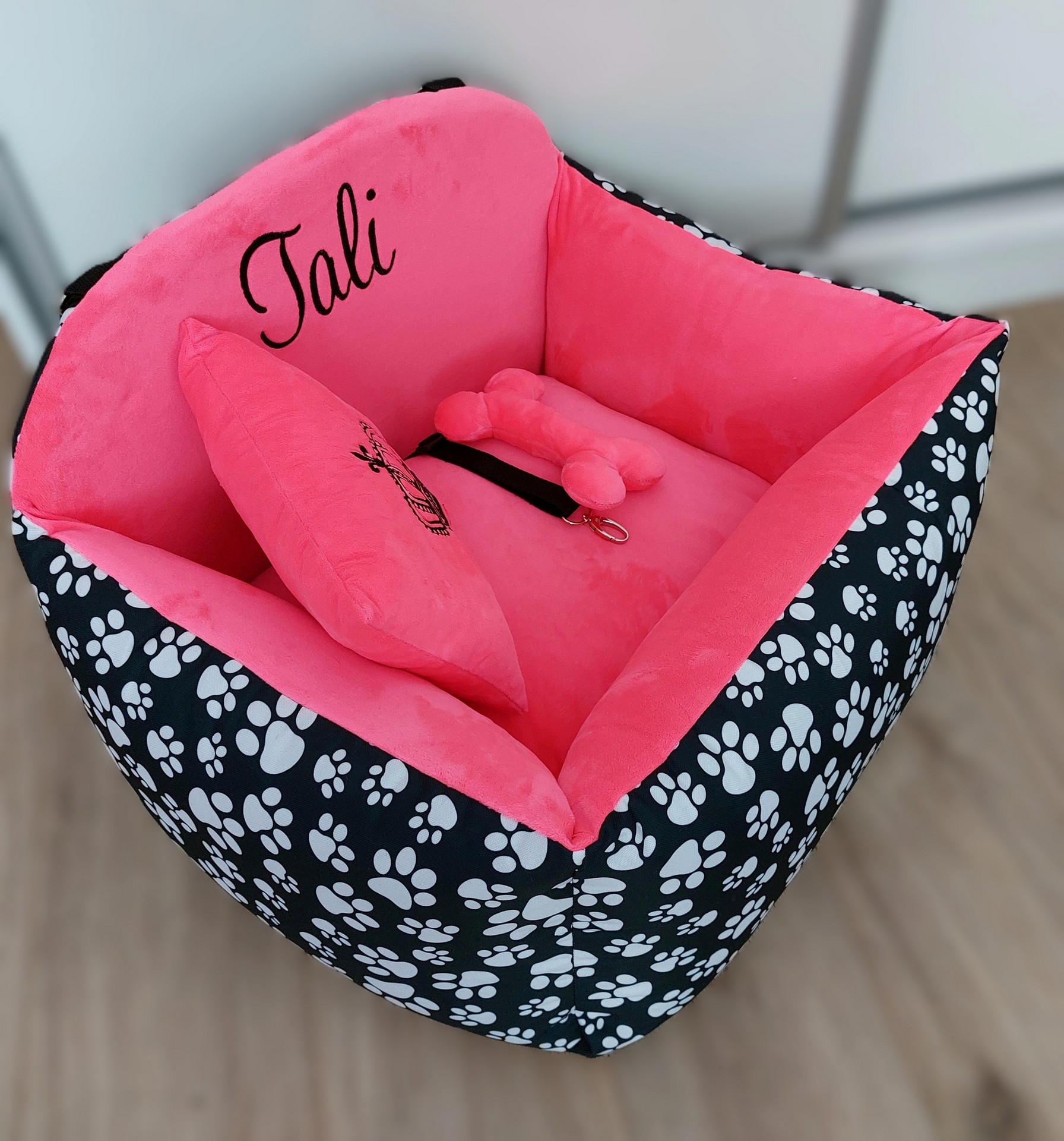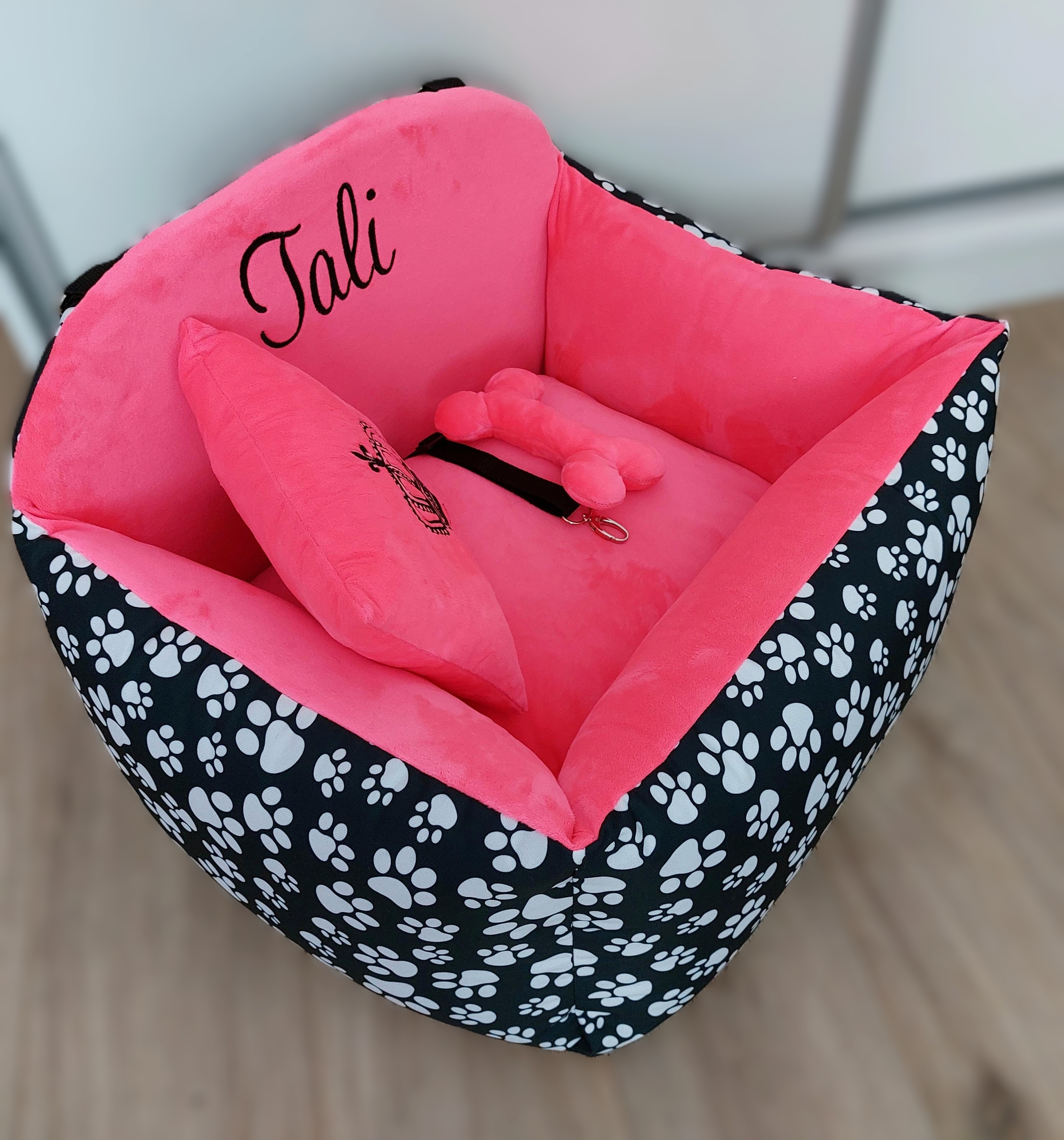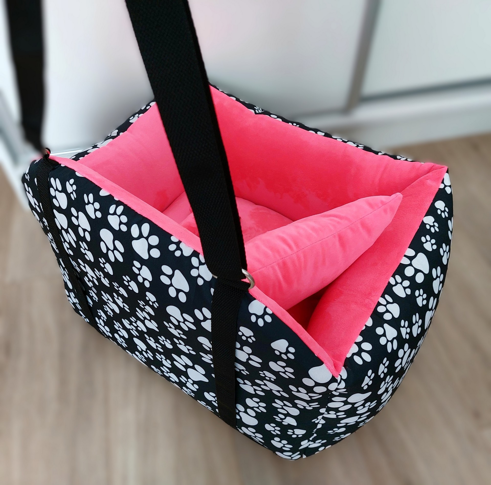 Autosedačka pre Tali v krásnej kombinácii s labkami . Rozmer 50 x 40 cm s vankúšom obojstrannym, na leto chladivým, v zime príjemný zamatový.