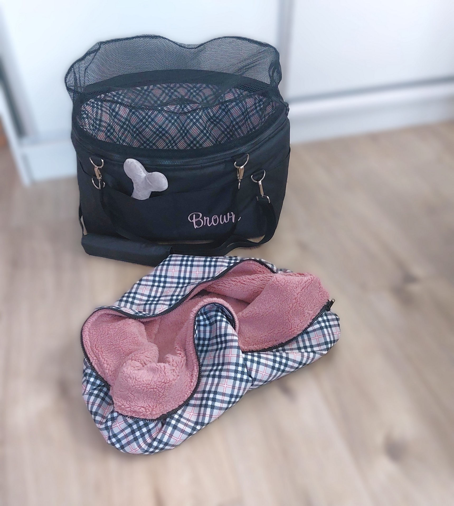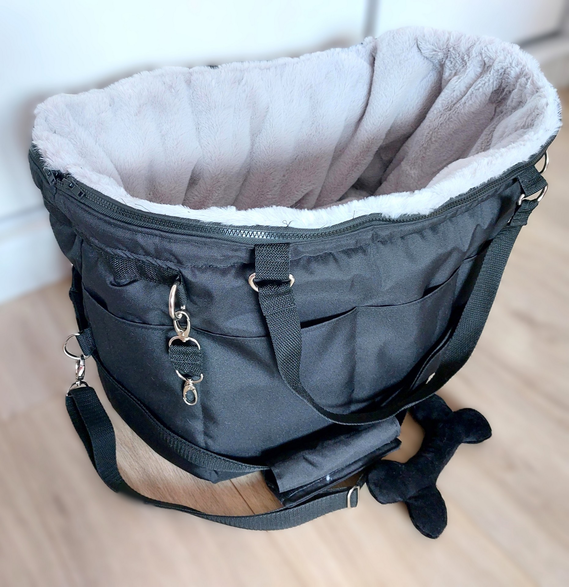 Mini pidi čierna prenosná taška 25x18cm pre 1,5 kg civavku .Jarná, letná, jesenná a zimná vyberateľná vložka K tejto taške som na prianie zakazníčky este došila jarno-jesenné minky vyberateľné vnútro.Takže je super cez leto bez vnútra, zima kožušinka, jar...