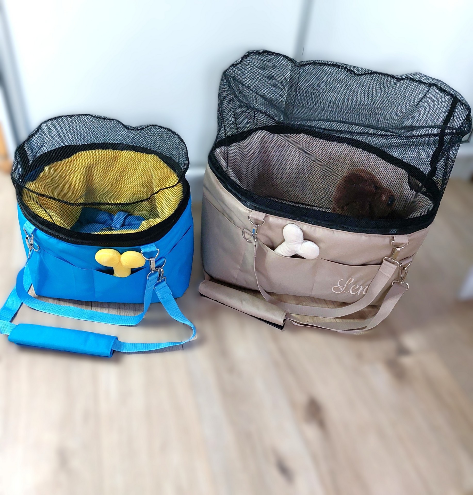 Dve letecké tašky, dva štýly, jedna láska k pohodliu našich štvornohých cestovateľov. Tyrkysovo-žltá** (35x25 cm) – kompaktná, hravá a ideálna pre malých prieskumníkov s nižšou sieťkou. Cappuccino-béžová** (50x30 cm) – elegantná, priestranná s vyššou...