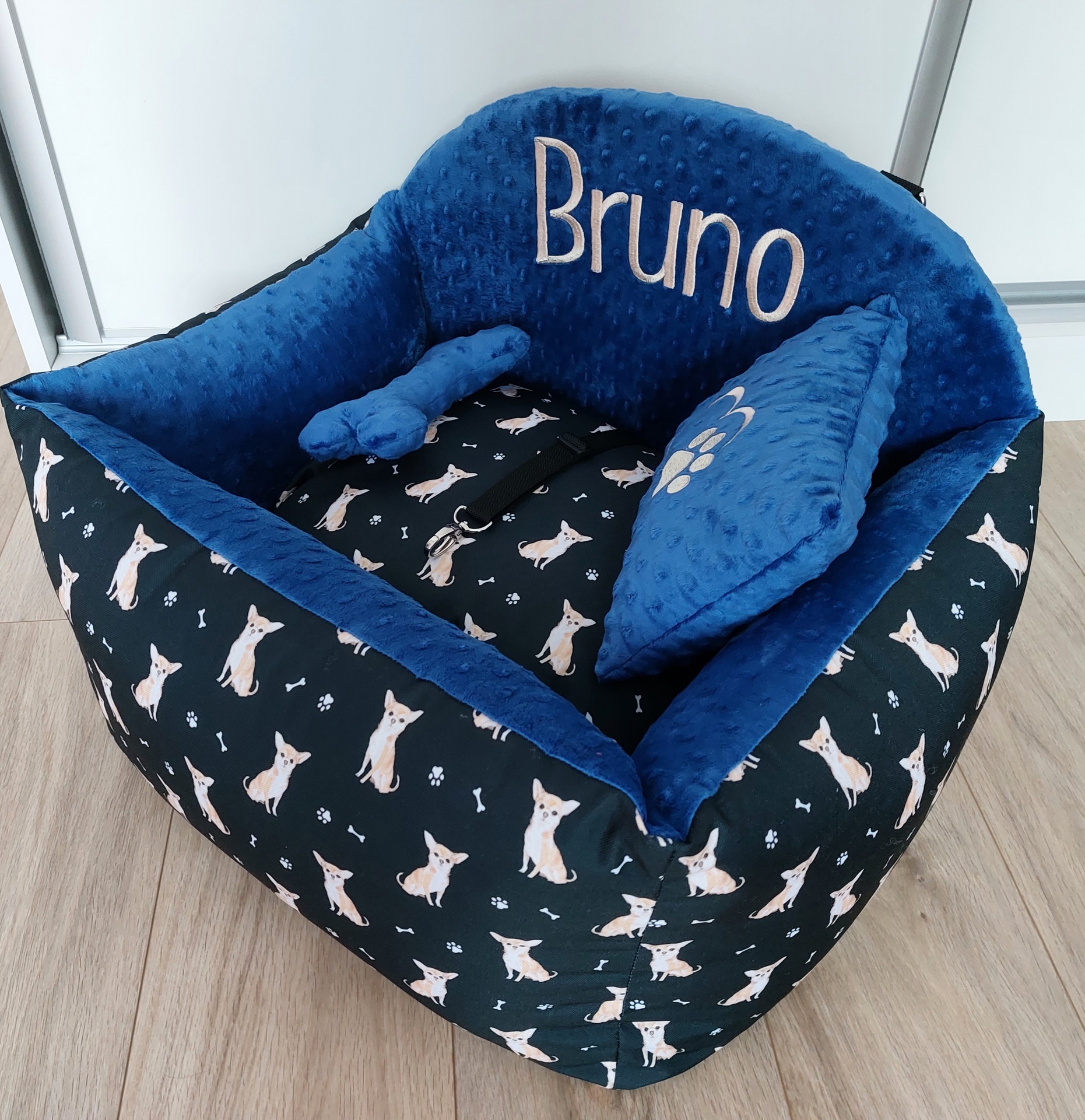 Autosedačka pre čivavku Brunka v krásnej kombinácii .Rozmer 50x40cm.