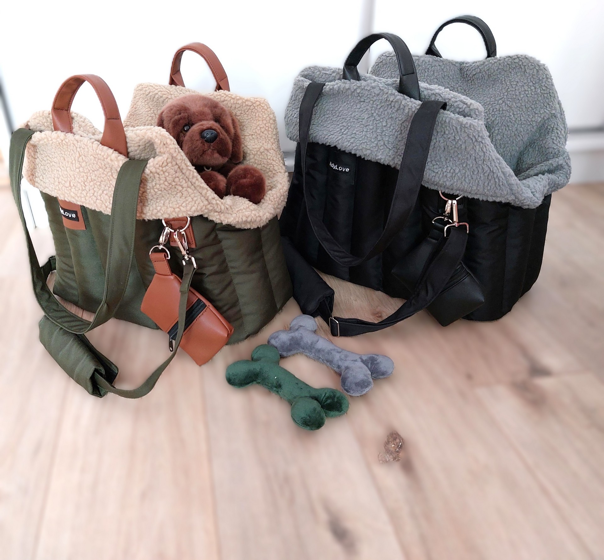 Naše originálne tašky pre psíkov sú veľmi obľúbené v zahraniči, teší nás, že aj tu u nás, si ich objednáva čoraz viac zákazníkov pre svojich psíkov . Ďalšia väčšia na zaslanie 50x30cm v army zelenej a šedej kožušinke. Kožušina je vyberateľná. Na želanie ...