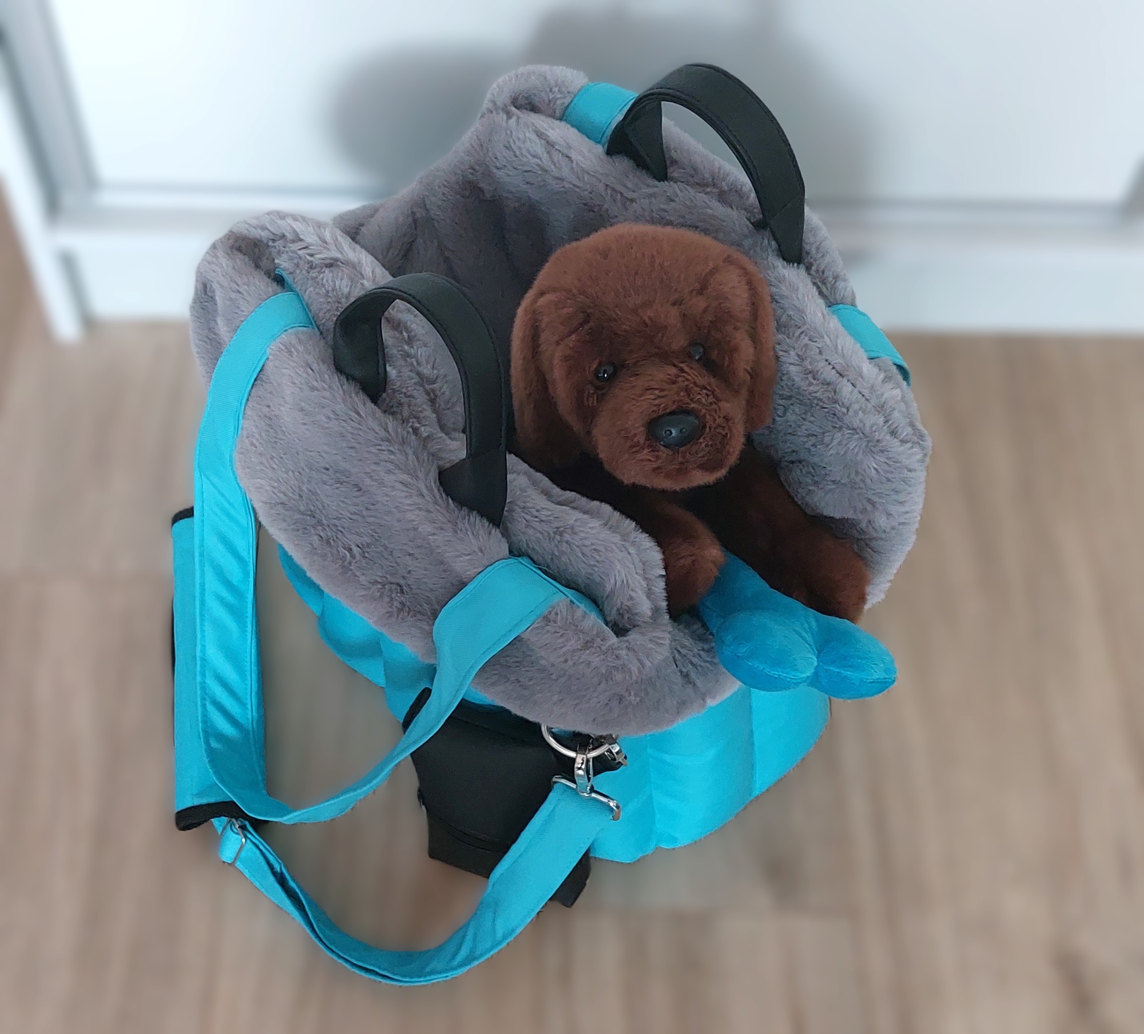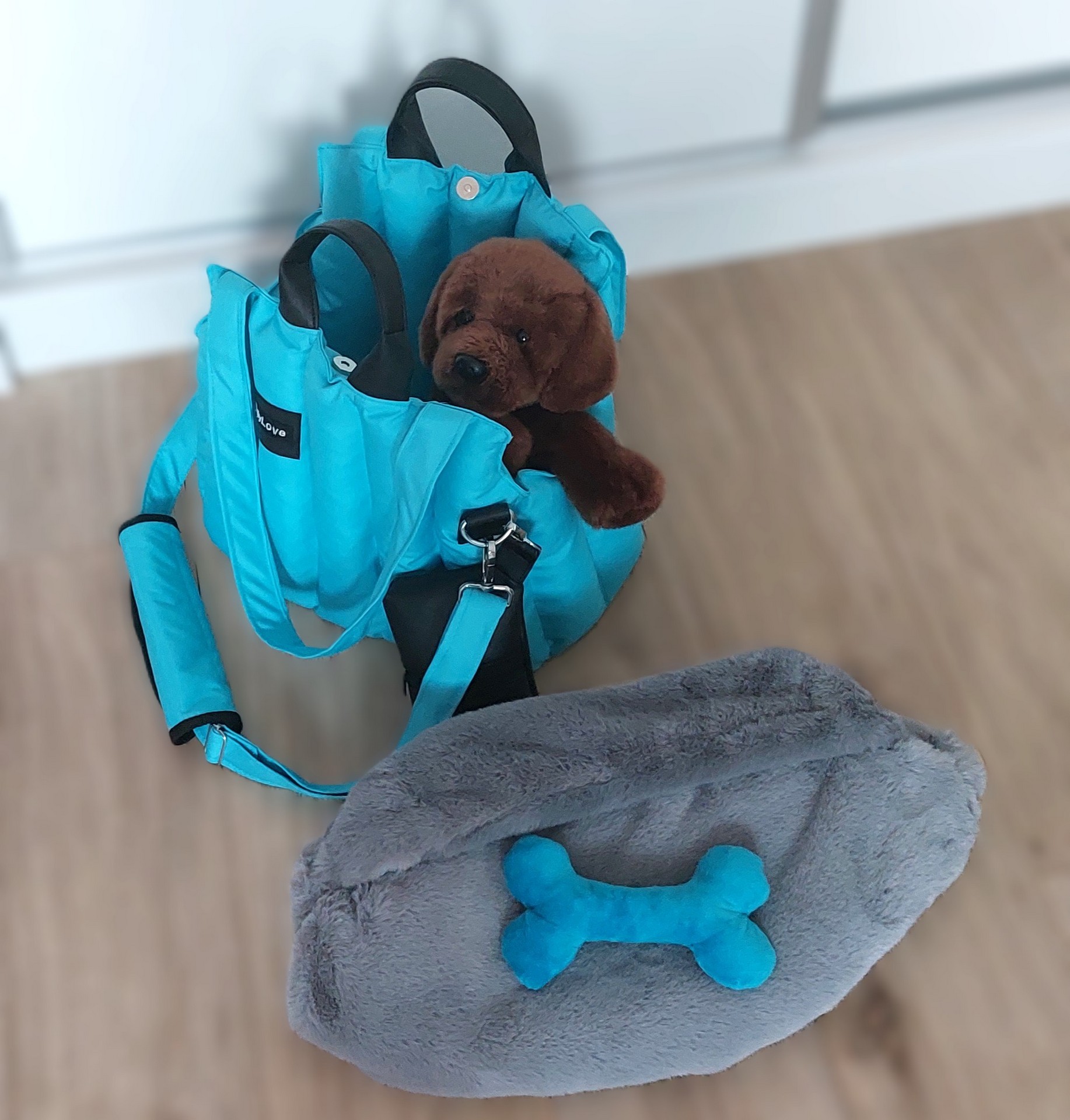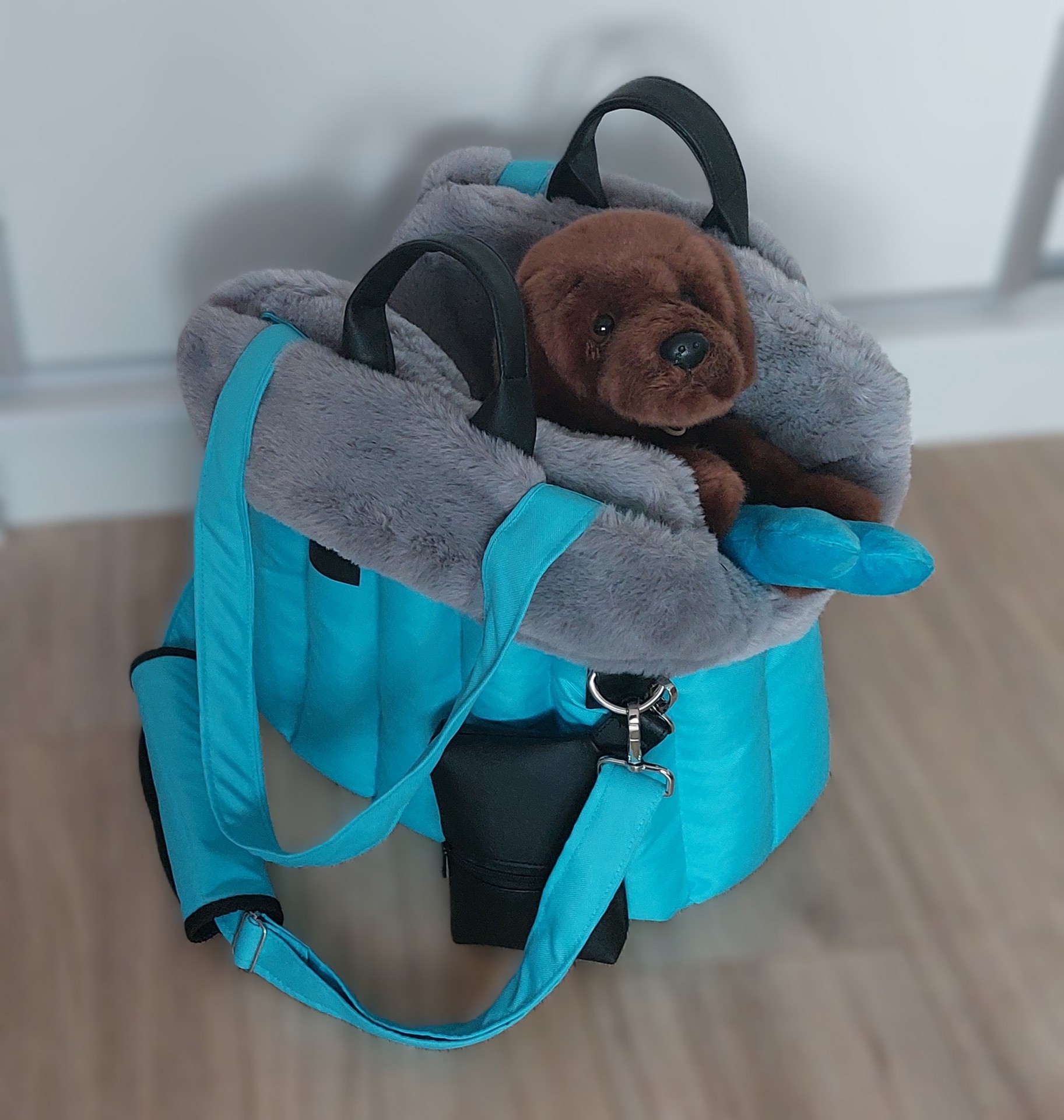 Užasna jemná tyrkysova"frozen" taška pre maličkého hafana, v rozmeroch 35x20cm so šedou vyberateľnou kožušinkou. Naozaj veľmi pekná kombinácia.